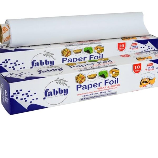 Fabby Paper Foil | 10 Meter (Pack of 2) | Ready-to-Use Perfect Roll | Plastic-Free Food Wrapping Paper | Ideal for Roti, Paratha, Sandwiches, Rolls & Burgers