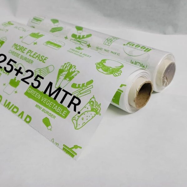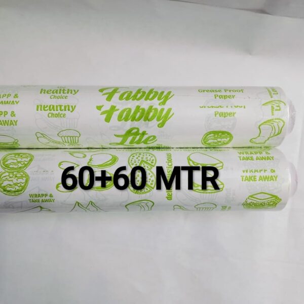 Fabby Lite Grease Proof Food Wrapping Paper 60+60 Meter Roll | Butter Paper for Burgers, Sandwiches & Rolls| 100% Food Grade & Eco-Friendly (Pack of 2)