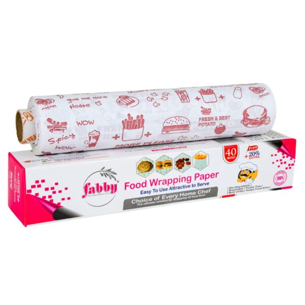 Fabby Food Wrapping Paper Roll | 40Mtr (Pack of 1) | Plastic-Free, Greaseproof & Breathable Kitchen Paper for Roti, Paratha, Burgers & Wraps | Microwave Safe | Ideal for Packing, reheating & Serving