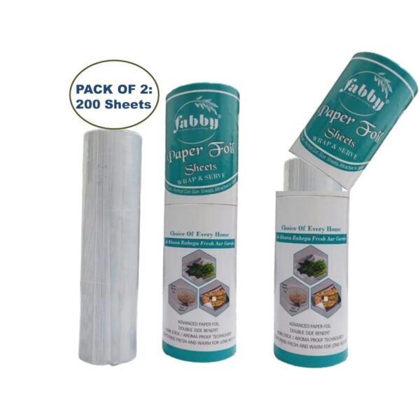 FABBY Heavy Duty Multi Purpose Wrapping Paper | 100 Ready-to-Use Sheets | Both Side Usable | Ideal for Wrapping, Storing & Serving Roti, Paratha, Sandwiches, Dhaniya, Pudina & Chillies | Pack of 2