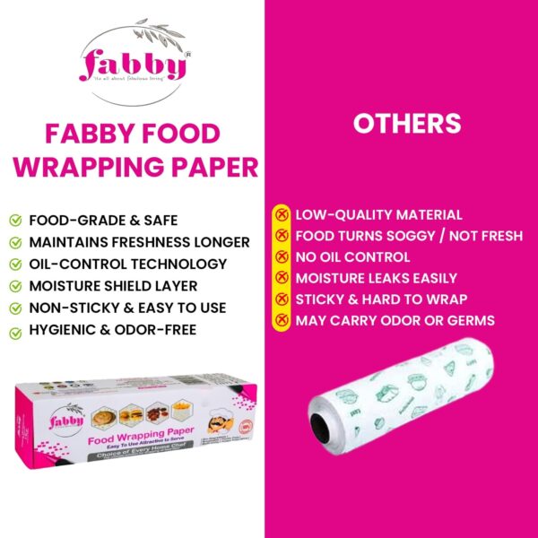 Fabby 20 Meter (Pack of 1) Food Wrapping Paper Roll Multipurpose | Non-Stick Paper for Butter, Parantha, Sandwich, Bakery & Daily Use | Re-Heatable, Eco-Friendly & Safe for Daily Use