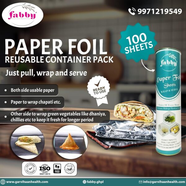 Fabby Paper Foil Roll for 1kg (Pack of 2) Chapati, Burger & Sandwich Wrap | Food-Safe Reusable Paper Foil | Heavy Duty Wrap for Roti, Paratha & Lunch Boxes Safe