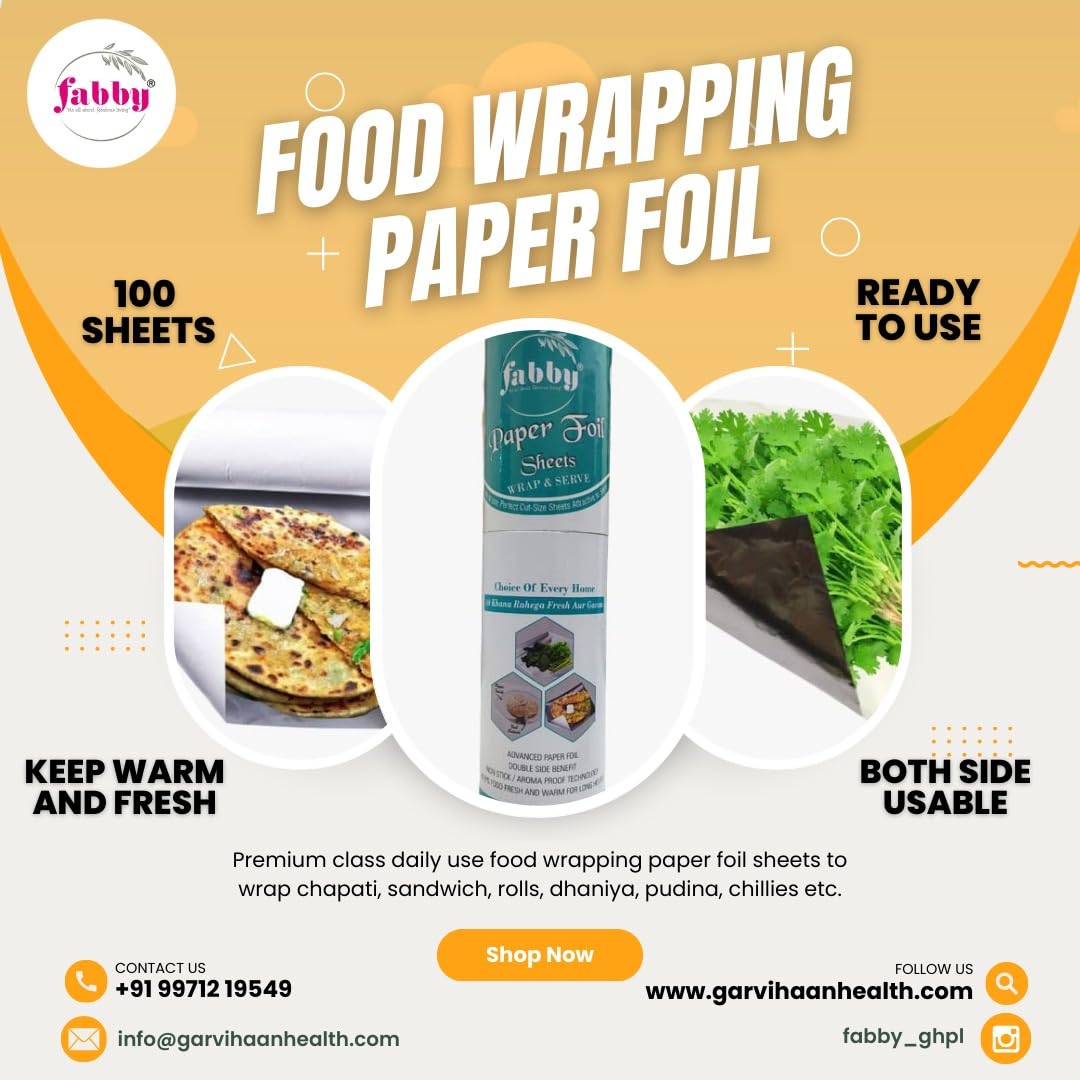 • Premium Class Daily Use Food Wrapping Paper Foil to Wrap Food, Parantha, Sandwiches, and Also to Preserve Mint Leaves, Dhaniya Etc.