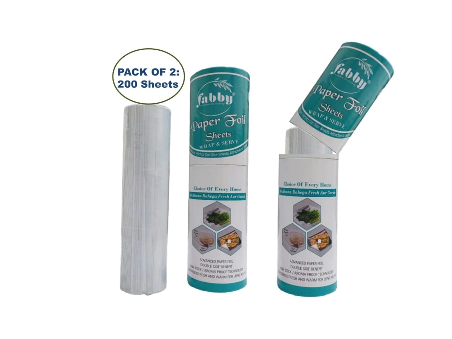 FABBY Heavy Duty Multi Purpose Wrapping Paper | 100 Ready-to-Use Sheets | Both Side Usable | Ideal for Wrapping, Storing & Serving Roti, Paratha, Sandwiches, Dhaniya, Pudina & Chillies | Pack of 2