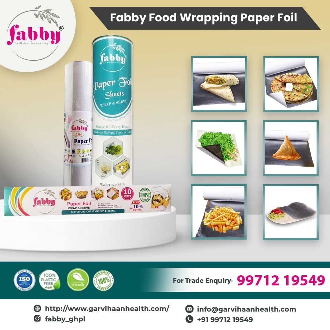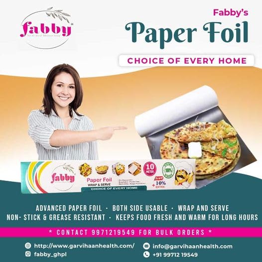 Fabby Paper Foil | 10 Meter (Pack of 2) | Ready-to-Use Perfect Roll | Plastic-Free Food Wrapping Paper | Ideal for Roti, Paratha, Sandwiches, Rolls & Burgers